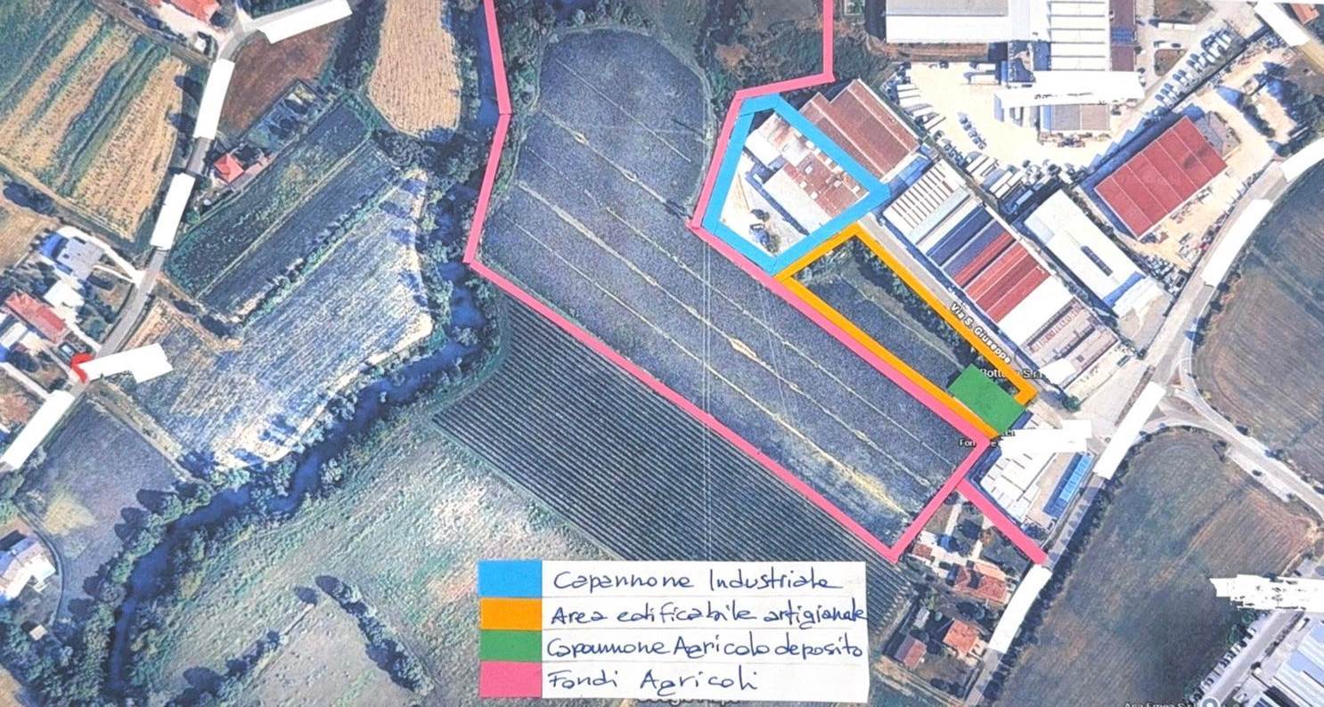 Area in vendita complessiva di 46.500 mq con diverse destinazioni. La superficie asservita all'attività industriale è di 5.650mq, i terreni con destinazione agricola hanno estensione di 32.700 mq e la zona artigianale, che ha anche una capacità edificatoria residua, conta 8.200 mq.