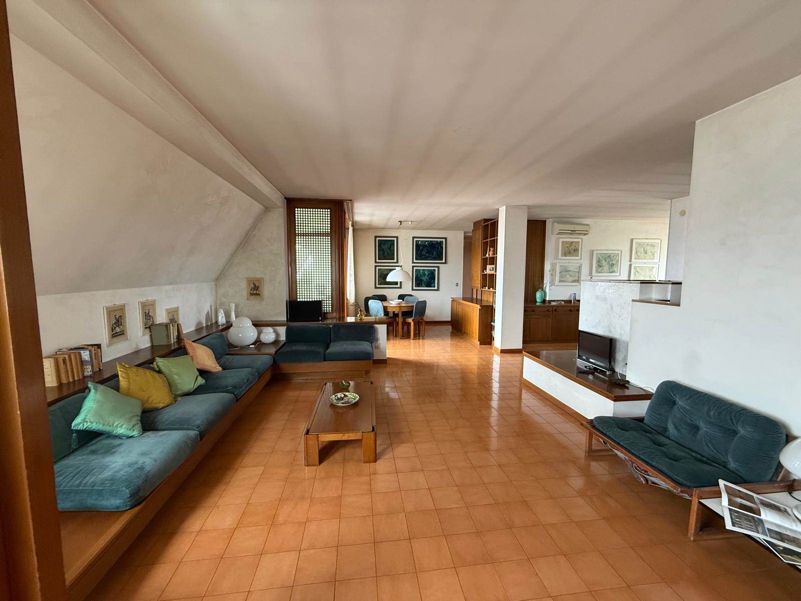 Centro città, comodissimo a tutti i servizi, questo attico è strategico per la vita familiare. L'immobile risale agli anni '70. Esternamente è molto piacevole ed accurato, internamente perfettamente manutenuto. Ascensore nuovo e con assenza di barriere architettoniche. L'immobile è molto spazioso 175mq vivibili, luminoso e soprattutto offre ampia possibilità di trasformazione rispetto allo stato di fatto attuale. Le terrazze sono entrambe vivibili, la principale di 20mq, attualmente verandata e direttamente connessa al salone. La disposizione è funzionale: Ingresso disimpegnato, ma tutt'uno con il salone che presenta un bellissimo caminetto a vista e la cucina che potrebbe essere separata; adiacente alla cucina una grande lavanderia e dispensa. Disimpegno notte, tre grandi camere (con possibilità di ricavarne una quarta) e due bagni di cui uno en-suite nella padronale. econda bella terrazza per la cucina. Completano l'immobile cantina e box auto.