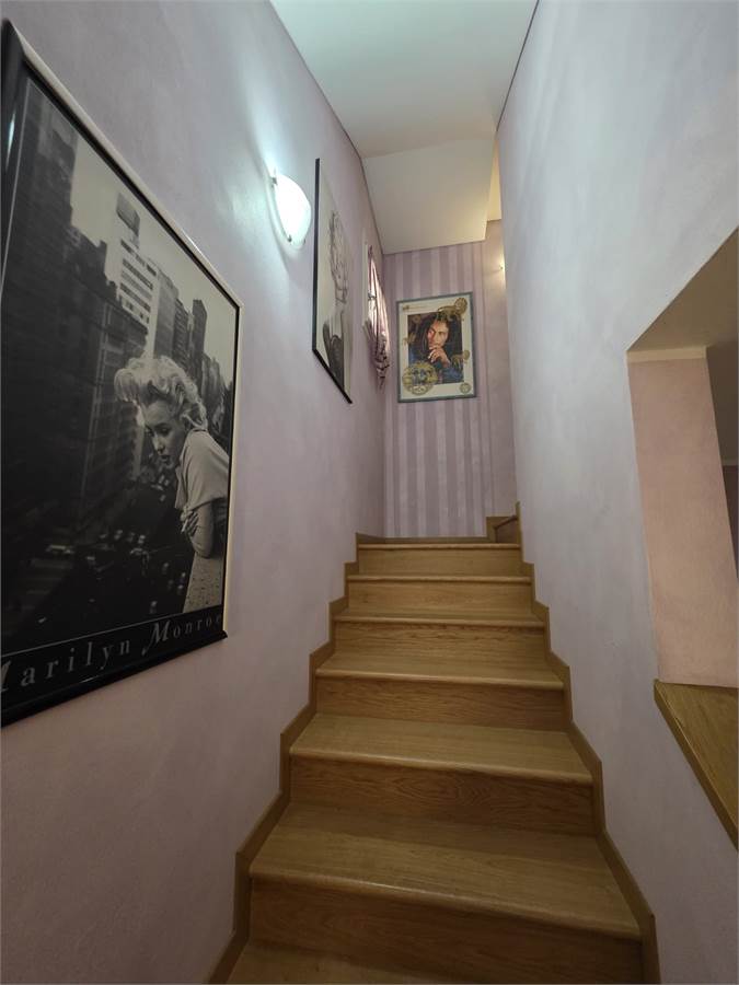 La villetta è un elegante e riservata residenza su due piani. Al piano terra l’ampia e luminosa zona giorno con affaccio sul giardino è caratterizzata da un ingresso che conduce al grande salone che attraversa l’abitazione consentendo di cogliere in profondità la luminosità che caratterizza la residenza; la cucina di design contemporaneo, il bagno ed il vano scala che conduce al piano superiore dove troviamo un disimpegno che introduce alla zona notte con una camera padronale, una camera doppia, una camera singola un grande bagno e uno splendido ed ampio terrazzo.