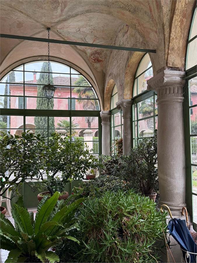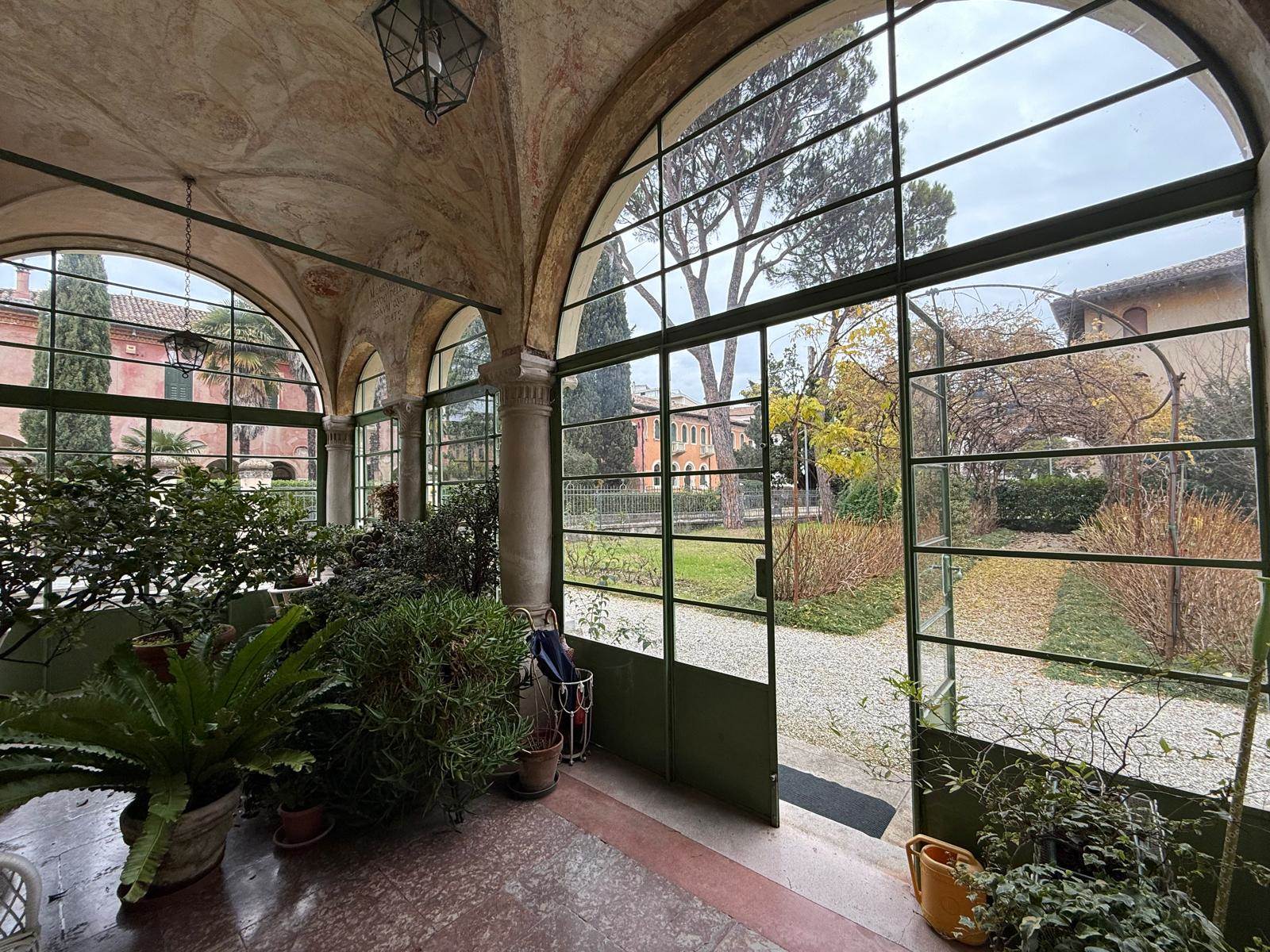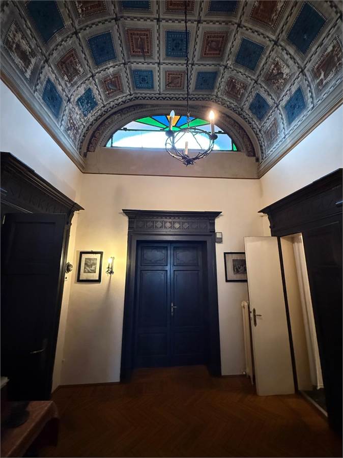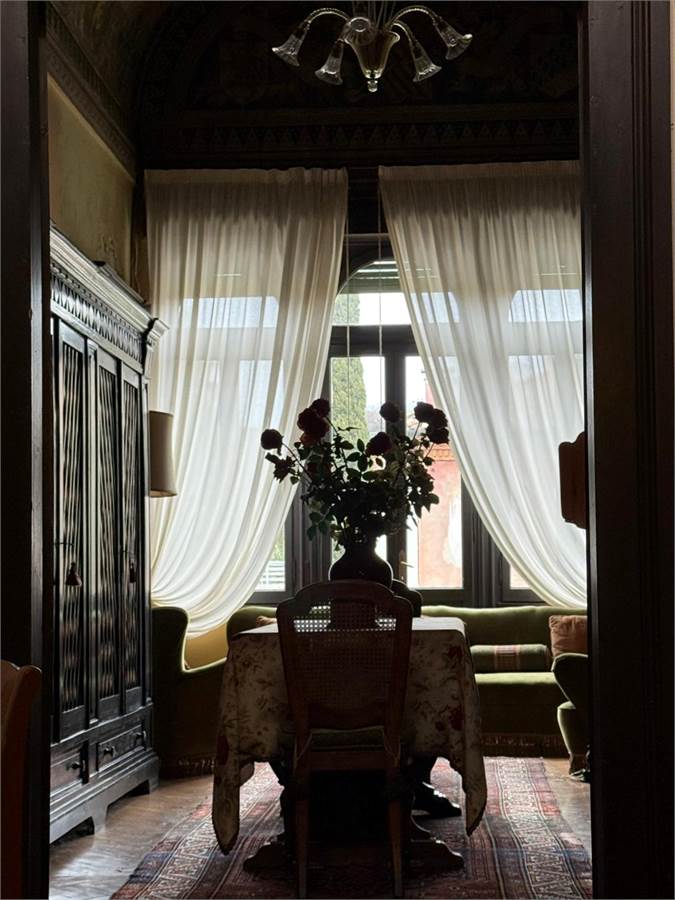 Edificato nel 1400, faceva parte del Convento di Sant'Antonio Abate ubicato alle porte del Centro Storico e in una posizione strategica per la vita della città, gode degli scorci architettonici tra i più belli. Non solo gli affacci interni sono perdutamente affascinanti, ma anche quelli esterni. Il giardino che circonda l'abitazione ospita delle essenze centenarie, monumenti viventi, e offre un'oasi in pieno centro. E' una proprietà comune con l'altra porzione dell'edificio, quindi fruibile da tutti i proprietari. I vialetti interni conducono al garage ed alla lavanderia con magazzino. L'accesso all'abitazione è davvero suggestivo, la serra liberty, gli affreschi a soffitto, i colonnati e la luce che filtra attraverso vetri al piombo originali e colorati che donano un'atmosfera unica. La scala in pietra che porta al livello superiore, sede dell'appartamento principale, è semplicemente meravigliosa. L'appartamento ha una metratura di oltre 250mq e si sviluppa su un nucleo antico sede del salotto interno e delle camere e un ampliamento eseguito nel 1948 che ha aggiunto un ampio salone e la cucina abitabile. Dal salone si esce in terrazza: oltre 100mq di spazio all'aperto, lussuoso, intimo. Il nucleo originale ha volte a botte affrescate tra la fine del 1700 ed il 1800. Lo studio ha dei colori che colpiscono diretti al cuore.