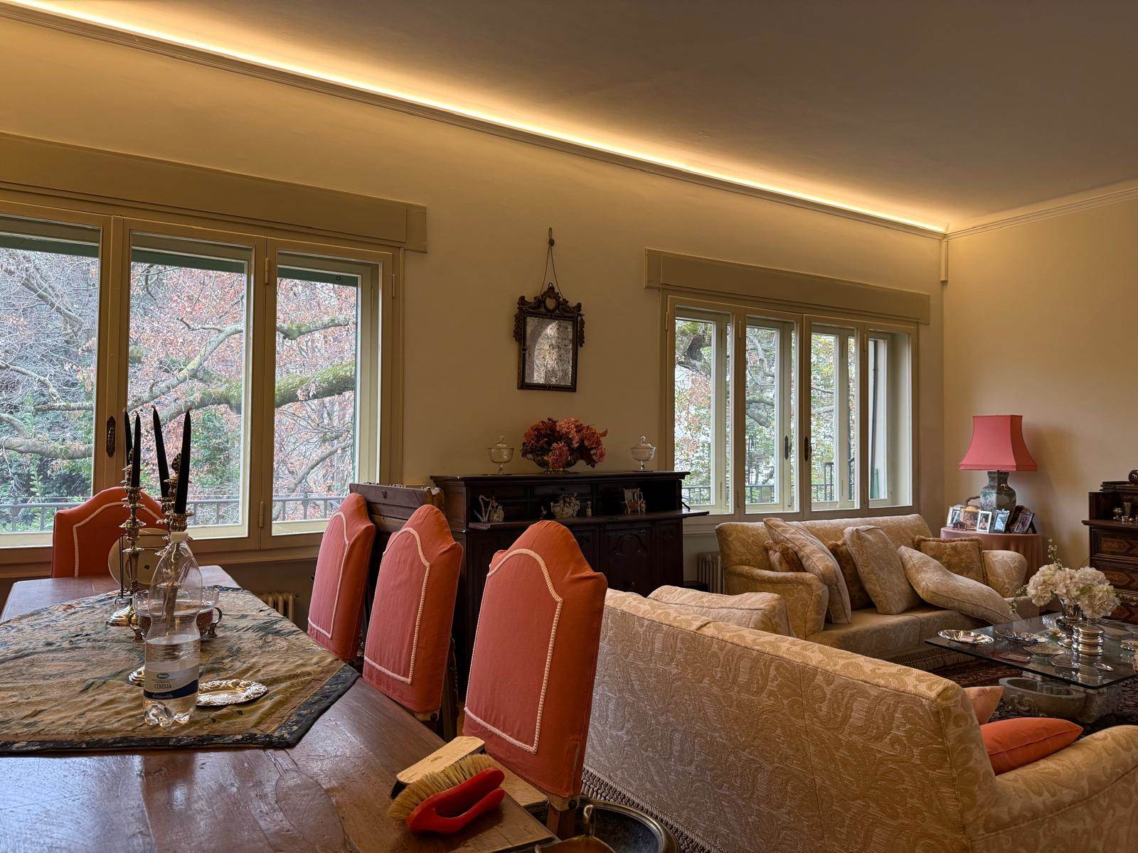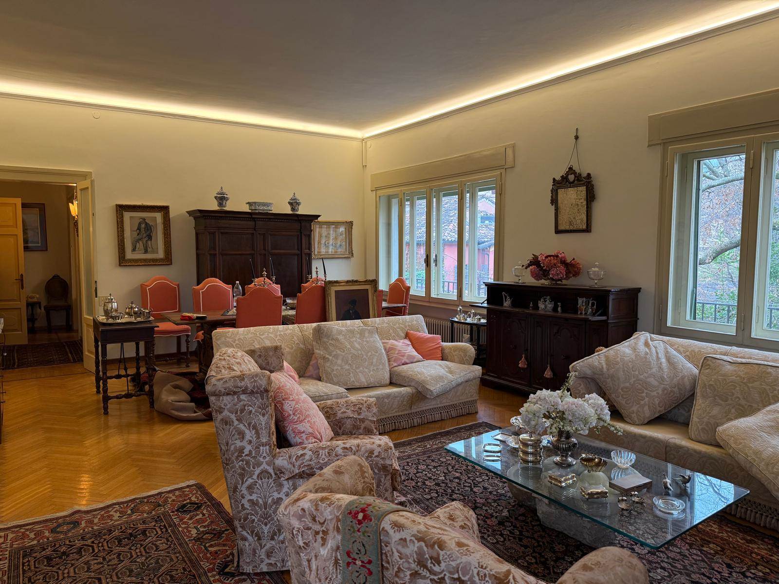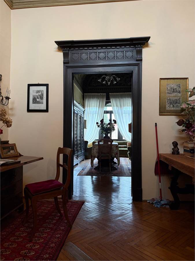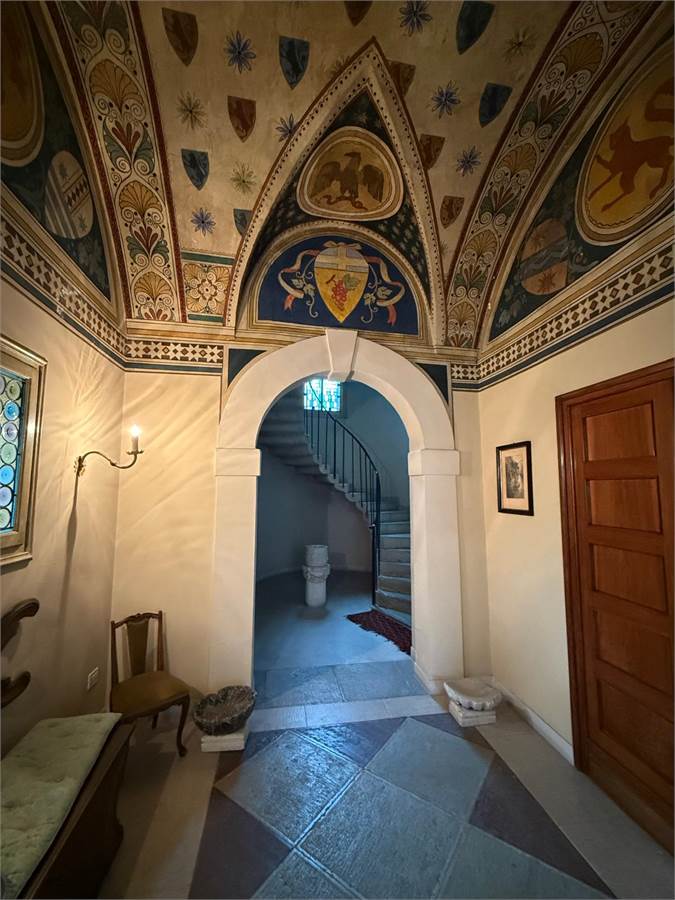 Edificato nel 1400, faceva parte del Convento di Sant'Antonio Abate ubicato alle porte del Centro Storico e in una posizione strategica per la vita della città, gode degli scorci architettonici tra i più belli. Non solo gli affacci interni sono perdutamente affascinanti, ma anche quelli esterni. Il giardino che circonda l'abitazione ospita delle essenze centenarie, monumenti viventi, e offre un'oasi in pieno centro. E' una proprietà comune con l'altra porzione dell'edificio, quindi fruibile da tutti i proprietari. I vialetti interni conducono al garage ed alla lavanderia con magazzino. L'accesso all'abitazione è davvero suggestivo, la serra liberty, gli affreschi a soffitto, i colonnati e la luce che filtra attraverso vetri al piombo originali e colorati che donano un'atmosfera unica. La scala in pietra che porta al livello superiore, sede dell'appartamento principale, è semplicemente meravigliosa. L'appartamento ha una metratura di oltre 250mq e si sviluppa su un nucleo antico sede del salotto interno e delle camere e un ampliamento eseguito nel 1948 che ha aggiunto un ampio salone e la cucina abitabile. Dal salone si esce in terrazza: oltre 100mq di spazio all'aperto, lussuoso, intimo. Il nucleo originale ha volte a botte affrescate tra la fine del 1700 ed il 1800. Lo studio ha dei colori che colpiscono diretti al cuore.