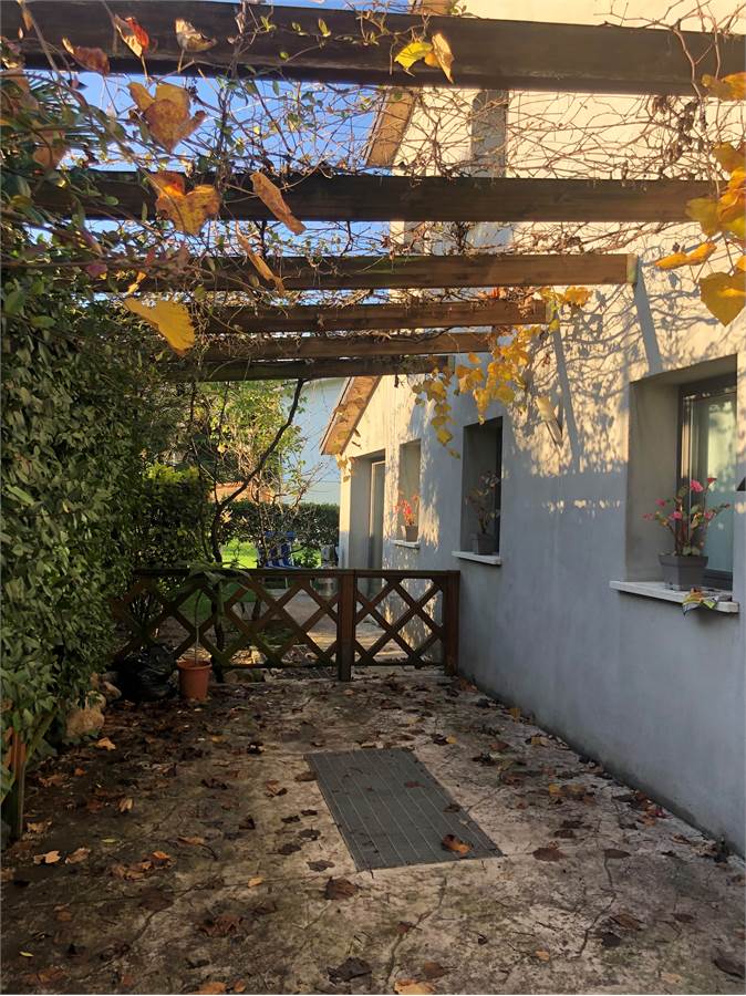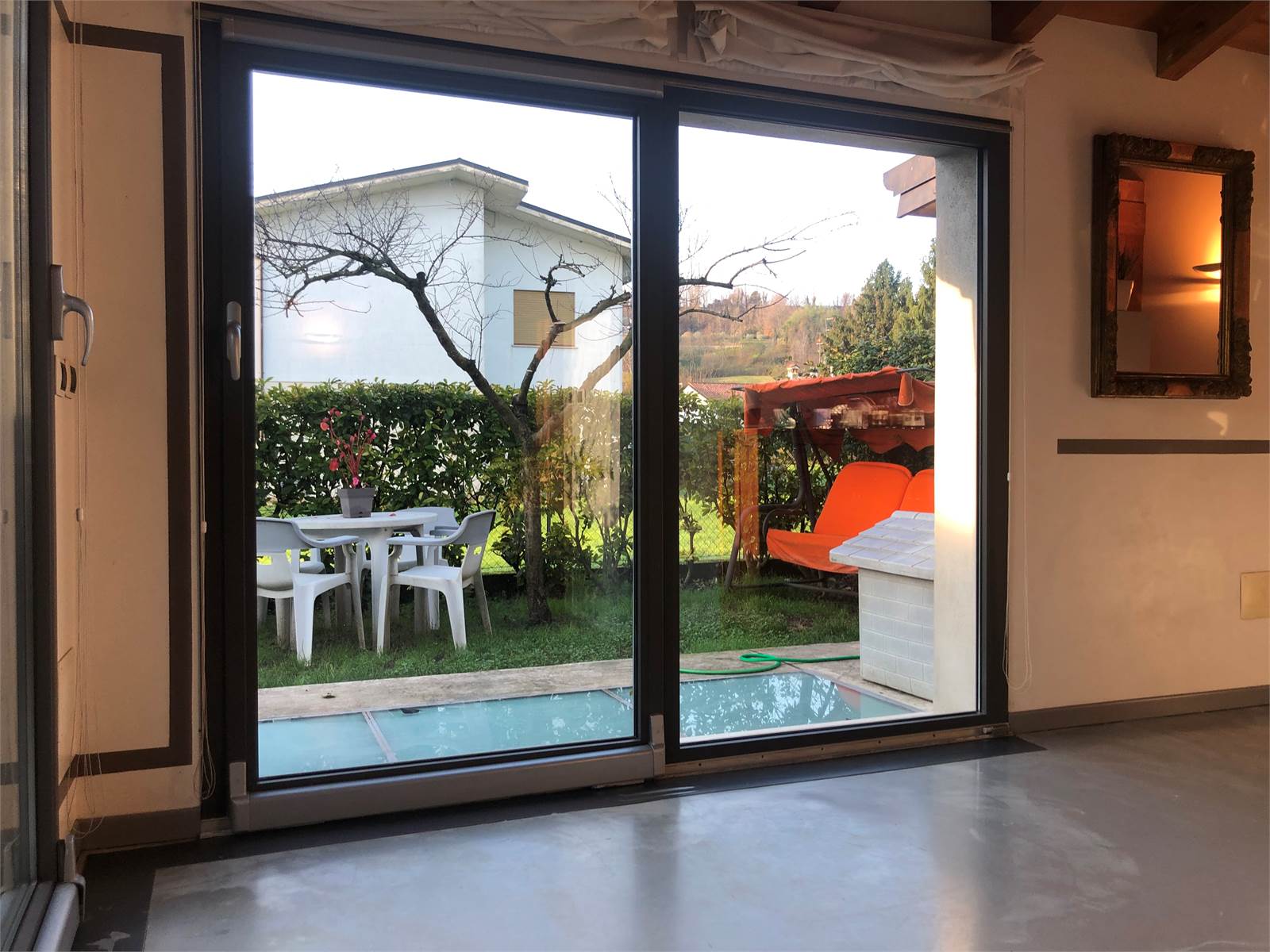 edificata nel 2017 su un piccolo lotto di terreno questa casa è stata costruita con gli standard propri della bioedilizia. Materiali moderni ed innovativi affiancati a quelli tradizionali come il legno che essendo un non conduttore è un ottimo isolante. Esternamente ha cappotto, mentre internamente ha travatura a vista in legno. Il progetto interno è molto moderno ed esalta spazi e luce. Alle spalle dell'abitazione si trova un borgo che funge da accesso comune. La casa è completamente orientata a sud e sul lato dell'accesso comune ha solamente la porta, blindata, di accesso. Confina con altri giardini ed orti in un contesto urbano, sicuramente, ma verde e con una bellissima vista a sud, sulle colline. Il tetto è rivestito in tegola canadese e offre grande praticità manutentiva. Il sistema di riscaldamento integra svariati sistemi per cui al riscaldamento a pavimento del piano terra e primo alimentato da pannello solare e boiler si affianca stufa a legna, split con inverter, e al piano interrato stufa a pellet e radiatori elettrici. Manca pannellatura fotovoltaica, ma già predisposta come collegamenti in fase di costruzione.