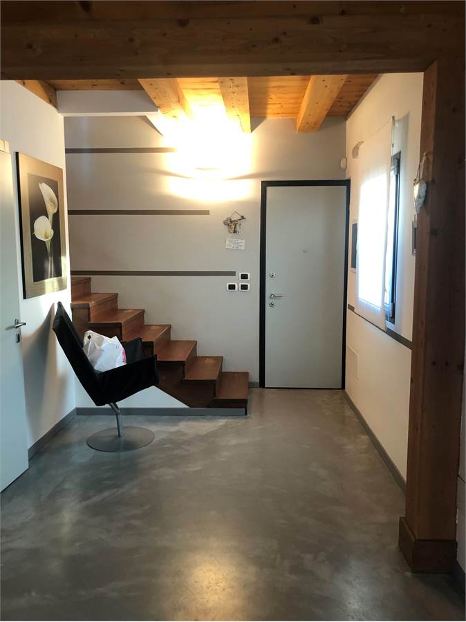 Il piano terra è un grande openspace di 64mq con un cucinino separato, che ha continuità nella più grande zona di sala da pranzo. Lo spazio del piano interrato( circa 68mq) è stato reso un continuum con il piano terra. Il piano interrato presenta anche una zona di servizio con la lavanderia, il bagno e la centrale termica. Al piano primo (circa 45mq) troviamo due camere di cui una matrimoniale con cabina guardaroba ed una singola e un bagno. Anche al piano terra si ha un bagno, per cui i servizi si trovano comodamente su ogni livello dell'abitazione.