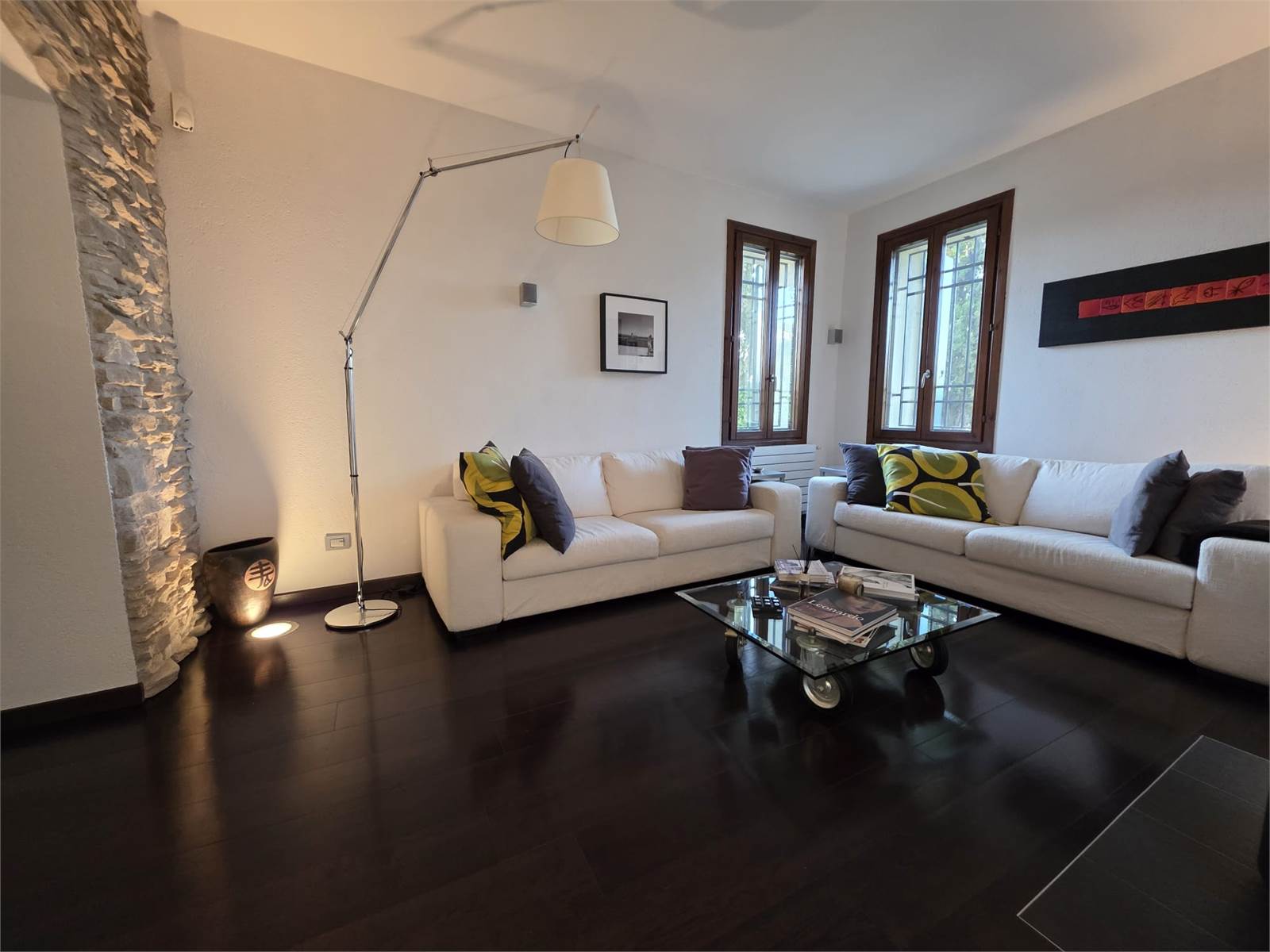 La casa si distingue per essere stata ristrutturata con gran gusto, legno e pietra si intrecciano creando un’atmosfera calda ed accogliente e nello stesso tempo moderna e raffinata.