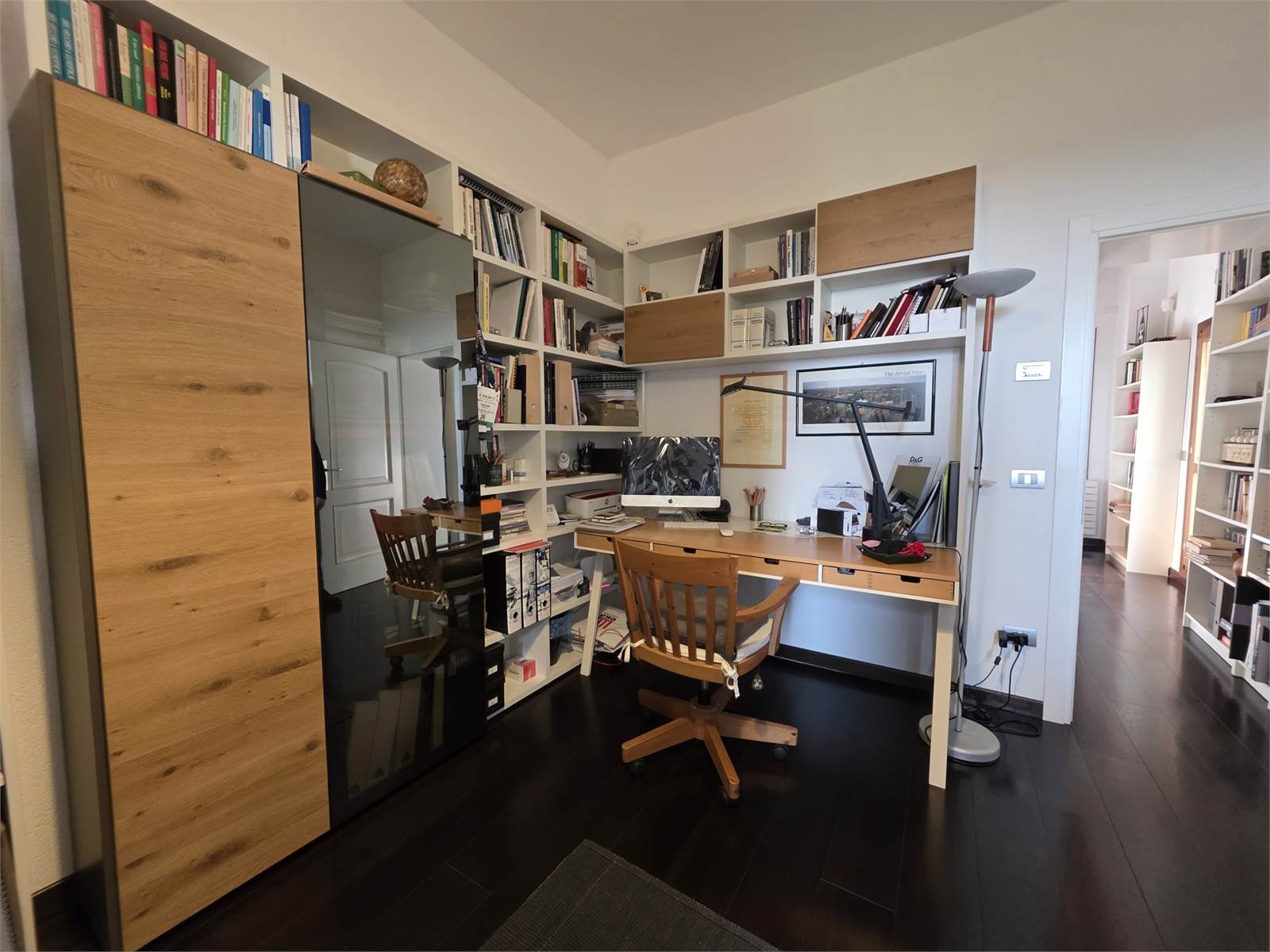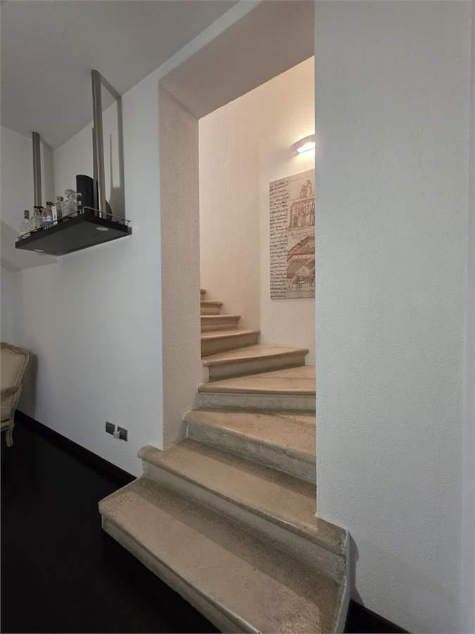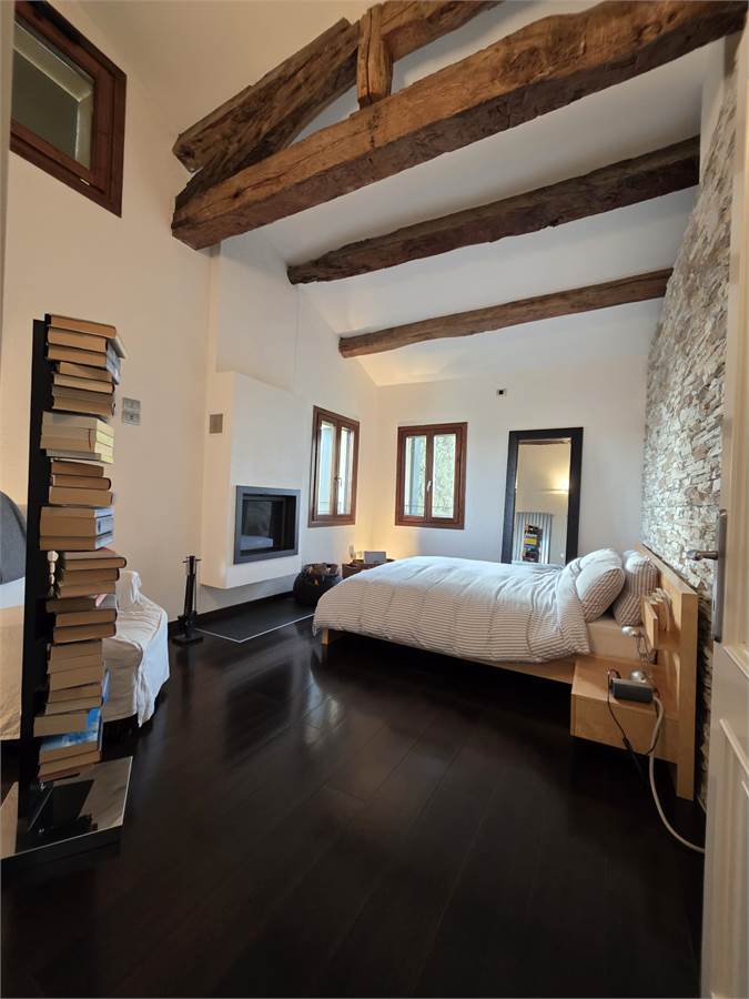 Dallo studio tramite un'altra rampa di scale si accede al secondo ed ultimo piano dove troviamo la camera padronale con camino e bagno in camera.
