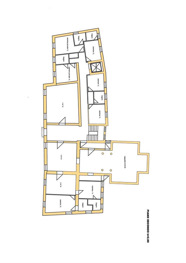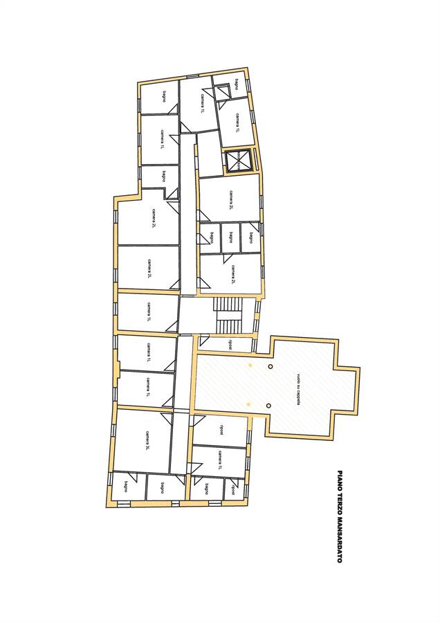 L’imponente struttura di notevole pregio architettonico, inserito in un contesto paesaggistico spettacolare, è attorniato da un importante parco con accesso pedonale monumentale ed accesso carraio separato.