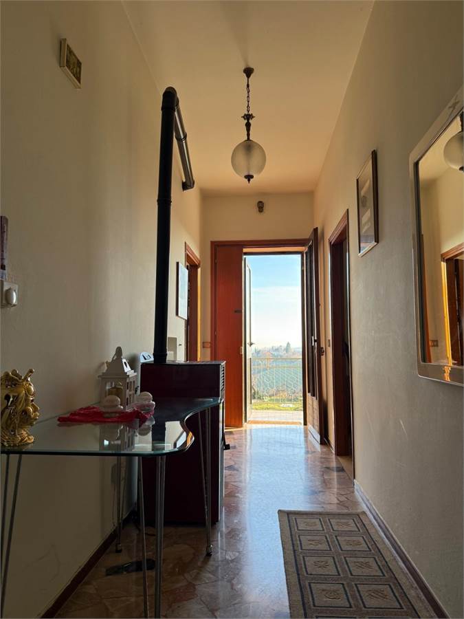 La prima cosa che colpisce di questo immobile è la vista strepitosa. Situato a cinque minuti da Conegliano in una zona decentrata collinare di prim'ordine, l'immobile è stato edificato nel 1988. E' una bifamiliare in verticale. La porzione venduta è quella al piano terra e primo. Lo scoperto è esclusivo e delimitato oltre che cintato, pari a 722mq e pavimentato. Accesso diretto al garage singolo, di bella metratura (circa 27mq) con cantina e lavanderia adiacente. La lavanderia, data la metratura di 20mq, si potrebbe utilizzare anche come taverna. Scala interna conduce al piano primo con l'abitazione vera e propria, circa 130mq, di ingresso su bel disimpegno con stufa a pellett, cucina abitabile, salotto, due camere matrimoniali una camera singola (accatastata studio), il bagno e due terrazzini, oltre al terrazzo di ingresso. La casa si presenta in ottimo stato manutentivo. Riscaldamento autonomo con caldaia in apposito vano e radiatori nuovi.